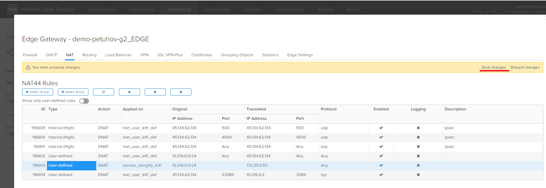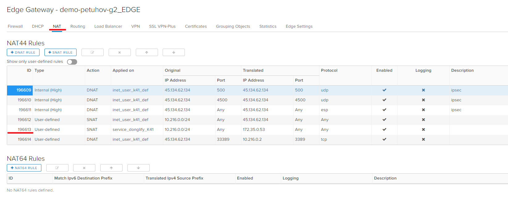Далее, переключаемся в раздел NAT, где необходимо создать правило аналогичное 196613