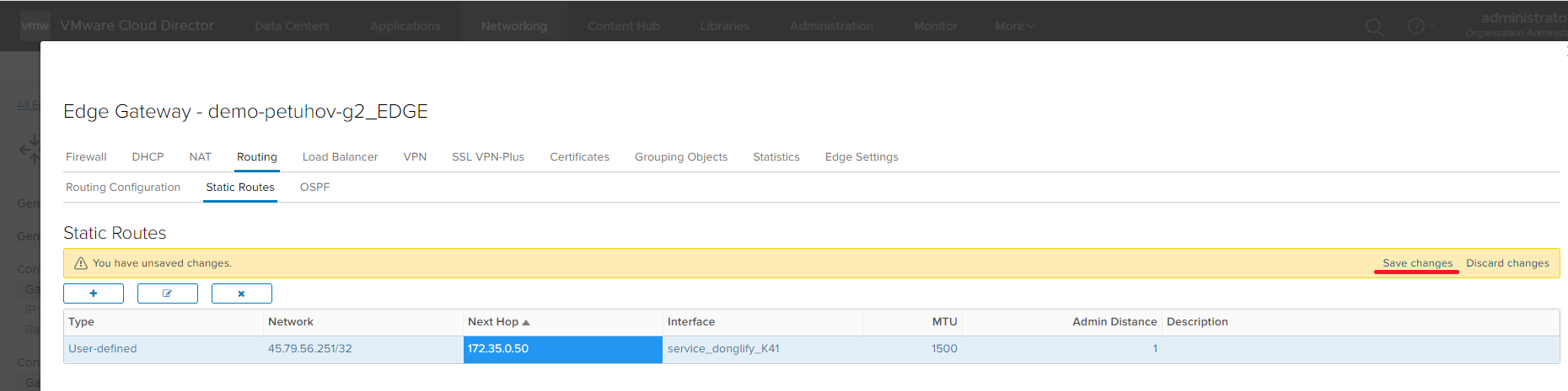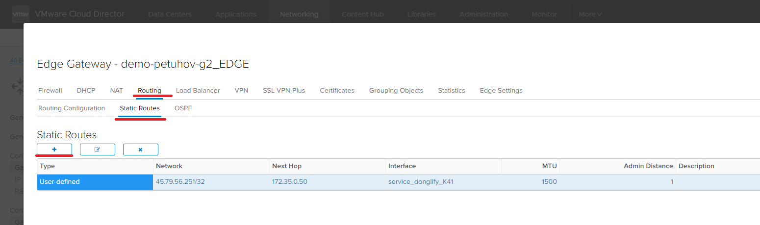 Переключаемся на вкладку “Routing”, раздел “Static Routes” и нажимаем “+”