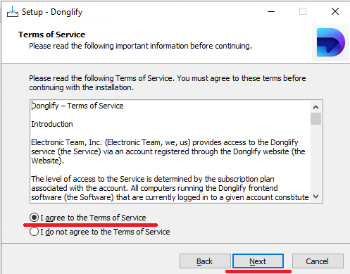 После ввода токена будет активна кнопка “Log In”, и откроется приложение Donglify.
