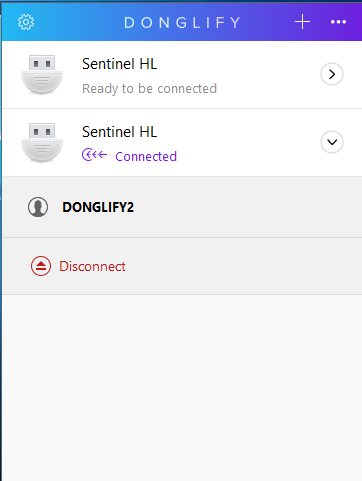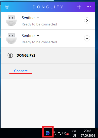 В открывшемся окне необходимо подключиться к одному или второму ключу и статус изменится на “Connected”.