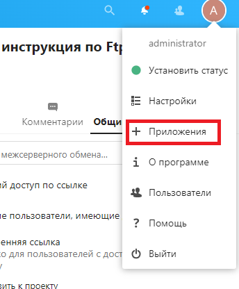 Для возможности использовать аутентификацию LDAP сервера необходимо установить и включить соответствующий модуль. Заходим в облако Nextcloud под учёткой администратора. Заходим в пункт Приложения в учётной записи администратора.