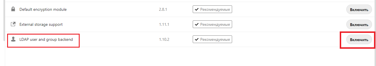 Нажимаем кнопку Включить напротив надписи LDAP user and group backend