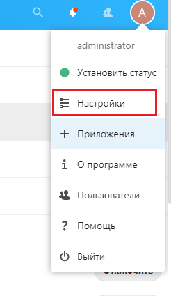 Затем нажимаем Настройки в аккаунте администратора: