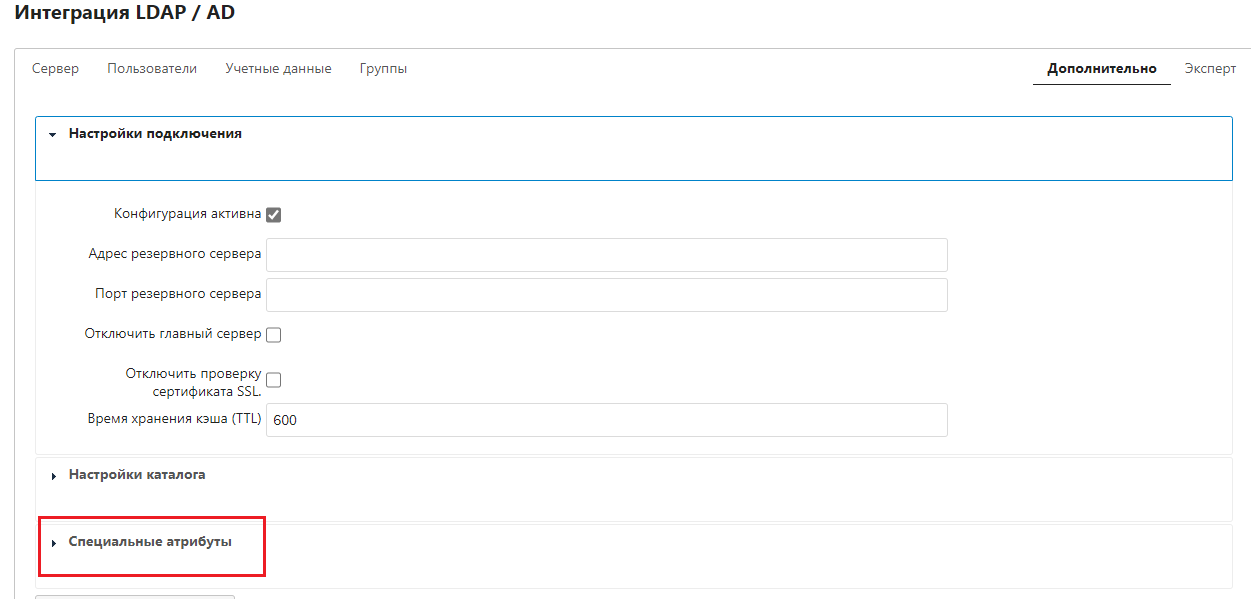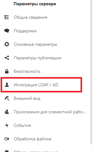 Переходим в Интеграция LDAP / AD: